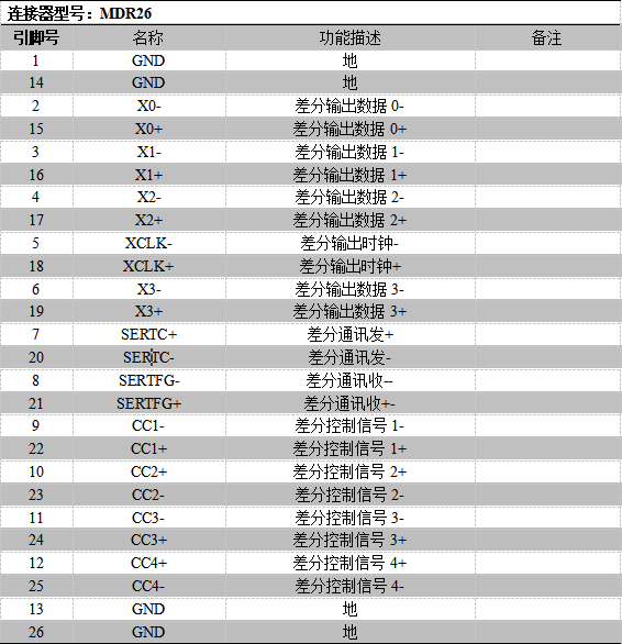 1.Cameralink输入接口定义: