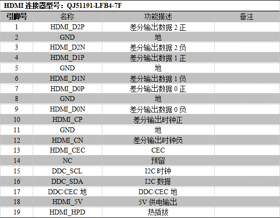 2.HDMI输出接口定义: