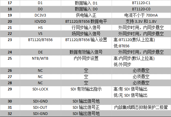 配置方式:默认已配置好,输入BT1120即可输出SDI(默认内同步、兼容外同步)。