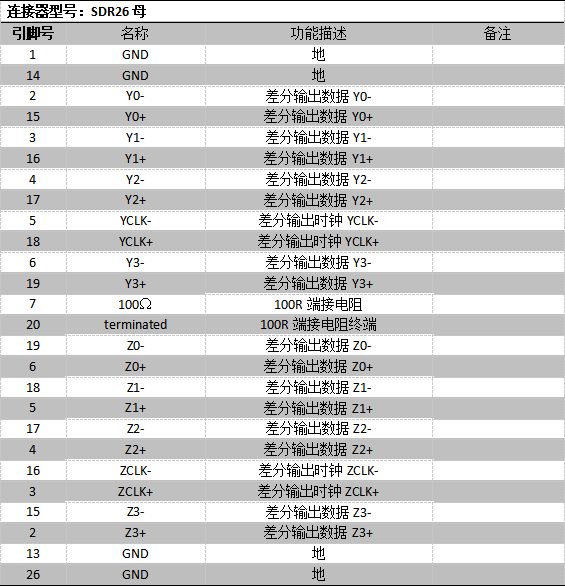 4.输出接口Medium/Full-OUT1/Medium/Full-OUT2(SDR26母)定义(采集卡为MDR26使用SDR26公转MDR26公即可):