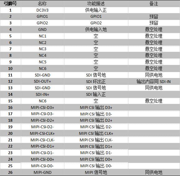 配置方式:默认已配置好,输入SDI即可输出MIPI CSI-2(默认2lane mipi csi Dphy YUV422 8bit非连接时钟)。
